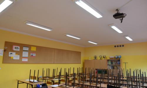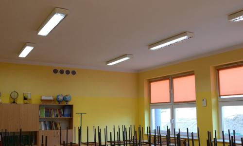 W ramach zadania w budynku Szkoły Podstawowa w Węgorzynie dokonano wymiany oświetlenia wewnętrznego na systemy oświetleniowe oparte na technologii LED.