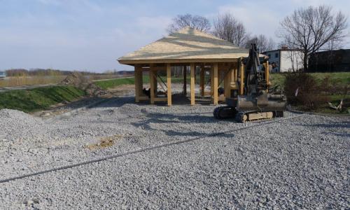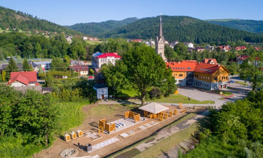 Centra edukacji ekologicznej zostały wybudowane w 2019 roku w ramach projektu "Zagospodarowanie cieków wodnych na terenie Gminy Porąbka” współfinansowanego ze środków UE w ramach regionalnego Programu Operacyjnego dla Województwa Śląskiego na lata 2014-2020.