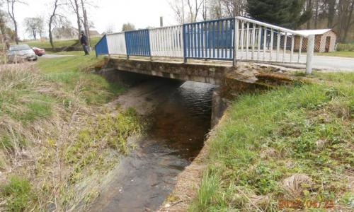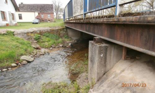 Dotychczas istniejący obiekt mostowy został wybudowany przed 1945 r. Był mostem betonowym jednoprzęsłowym o pomoście płytowo – żebrowym monolitycznym złożonym z sześciu belek zespolonych płytą grubości około 25 cm. Pomost opierał się na betonowych przyczółkach równoległych do koryta rzeki. Początkowo most miał całkowitą szerokość około 5,5 m, która w trakcie użytkowania została zwiększona do 7,0 m. Stan techniczny ustroju niosącego i podpór mostu był zły, w wyniku czego nośność obiektu została ograniczona do 12 ton. Po analizie możliwych do zastosowania rozwiązań Powiatowy Zarząd Dróg w Świdwinie podjął decyzję o konieczności rozbiórki istniejącego