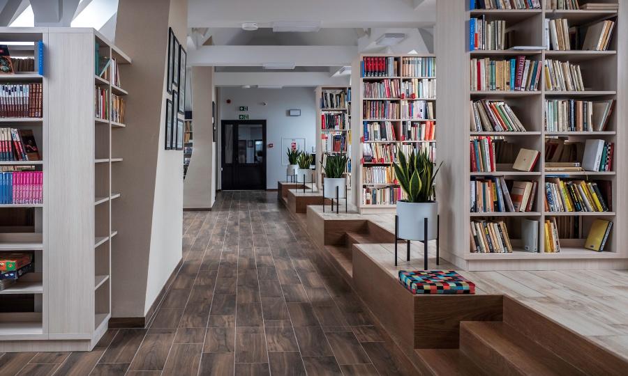 • centrum zarządzania biblioteką oraz czytelnią multimedialną (zaadoptowane stare poddasze)