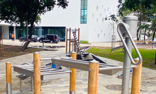 Przy pływalni są: parking na 80 miejsc, tor dla rolkarzy, siłownia zewnętrzna, górka dla saneczkarzy i place zabaw, w tym wodny plac zabaw z 12 różnymi urządzeniami. Zagospodarowane zostały tereny zieleni z ławeczkami i wybiegiem dla psów.