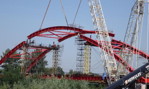 • most wieloprzęsłowy, monolityczny i prefabrykowany, przęsło nurtowe w postaci łuku z podwieszonym pomostem, przęsła dojazdowe jako belkowo-płytowe, posadowienie obiektu pośrednie w postaci pali prefabrykowanych, wbijanych;