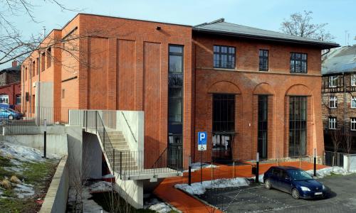 Przebudową i zmianą sposobu użytkowania objęty jest budynek dawnej oczyszczalni gazu z ok. 1870r., następnie pełniący funkcję magazynu, wraz z terenem przyległym. Przebudowa obejmowała kompleksowy remont całego budynku wraz z wymianą dachu, stropów, solarki okiennej, remontem elewacji oraz termomodernizacją. Zadanie obejmowało również wyburzenie dobudówki budynku głównego, wykonanie nowych przyłączy mediów oraz zagospodarowanie terenów przyległych poprzez wykonie parkingów i nasadzeń zieleni.
