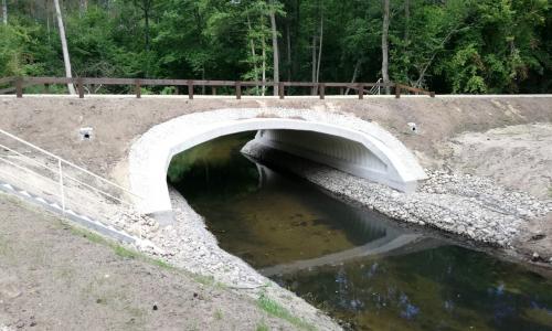 Most ten został wybudowany w nowoczesnej technologii tzw. blachy falistej tj. technologii ograniczającej do niezbędnego minimum ingerencję w środowisko oraz tańszej od klasycznej konstrukcji żelbetowej. Parametry mostu zostały dobrane w sposób zapewniający dostateczną przepustowość dla wód wezbraniowych, jak również zmniejszających ryzyko zatamowania przepływu przez rumosz drzewny.