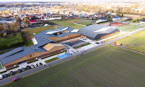 Oddanie do użytku: sierpień 2021 (szkoła,przedszkole,zagospodarowanie terenu); styczeń 2022 (hala sportowa, siłownia, sala fitness)