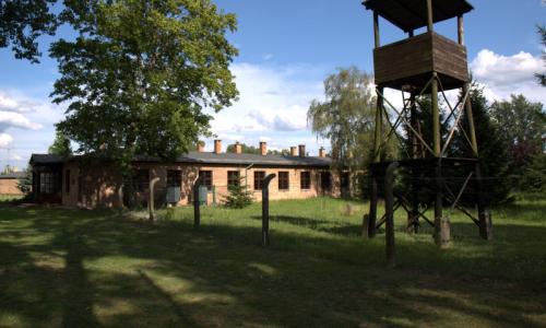 ekspozycję na ogrodzonym terenie muzeum elementów historycznych (jak np. brama obozowa, wieża strażnicza, ogrodzenie obozowe, płyty nagrobkowe) oraz multimedialnej makiety obozu zabezpieczonej przed czynnikami atmosferycznymi umieszczeniem w przeszklonym pawilonie,