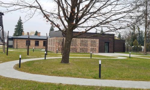 Istniejący budynek muzeum uzupełniony został o nową część, powiązaną z częścią istniejącą. Utrzymano formę budynku istniejącego z jedną kondygnacją nadziemną i dachem kopertowym o niskim nachyleniu. Rozbudowa nie spowodowała zmian w istniejącej, charakterystycznej klinkierowej elewacji budynku poobozowego. Stara i nowa część budynku otrzymały spójną formę obiektu muzealnego. Uzupełnieniem całości jest zagospodarowanie terenu. Proponowane zmiany funkcjonalne w budynku mają na celu poprawę jego standardu użytkowego z dostosowaniem do współczesnych standardów w zakresie ekspozycji, zapewnienie dostępności dla osób niepełnosprawnych oraz uzupełnienia oferty muzeum (np. wykłady, szkolenia itp.). Nowy budynek muzeum po rozbudowie w części dotychczas istniejącej mieści: