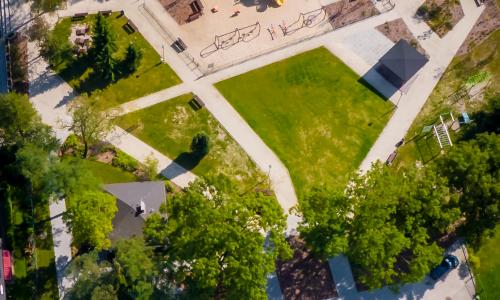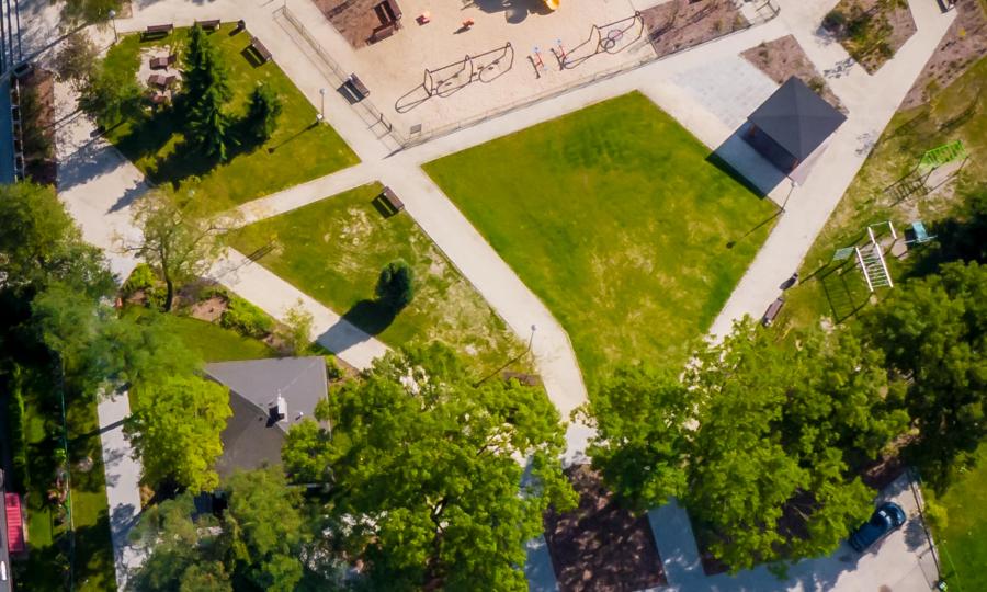 - w centralnej części placu usytuowano altanę, pełniącą funkcje sceny w trakcie wydarzeń, wokół niej utworzono teren zielony przeznaczony dla dzieci i rodzin,