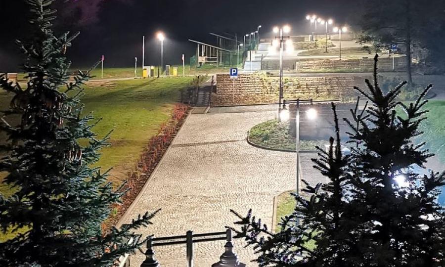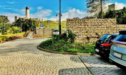 Parking z górną przestrzenią ekspozycyjną z widokiem na Ruiny Zamku w Olsztynie