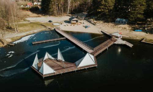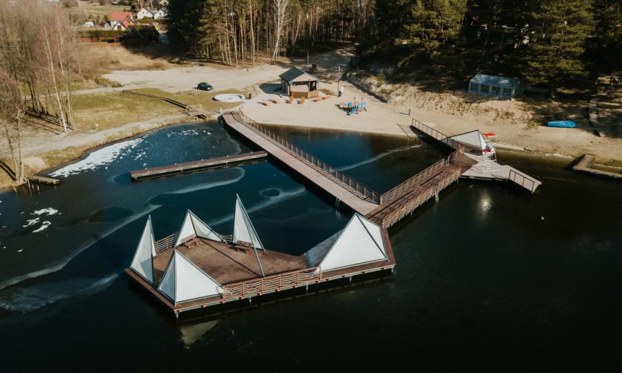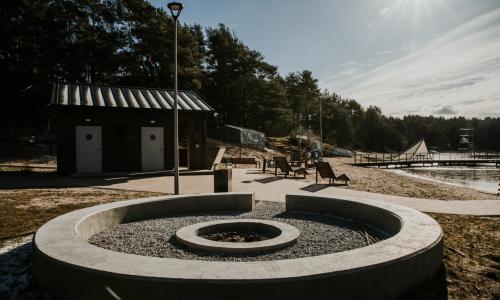 Na tym terenie powstał przepiękny obiekt obsługujący kąpielisko, oraz infrastruktura rekreacyjna w formie miejsca na ognisko, siłowni pod