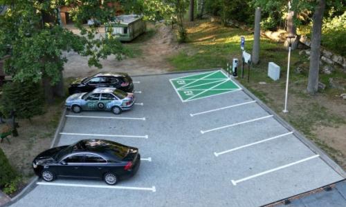 Zagospodarowanie terenu wokół budynku polegało na połączeniu go z ok. dwoma km. tras zwiedzania, instalacją teletechniczną, oświetleniem parkowym oraz parkingiem ze stacją ładowania pojazdów elektrycznych.