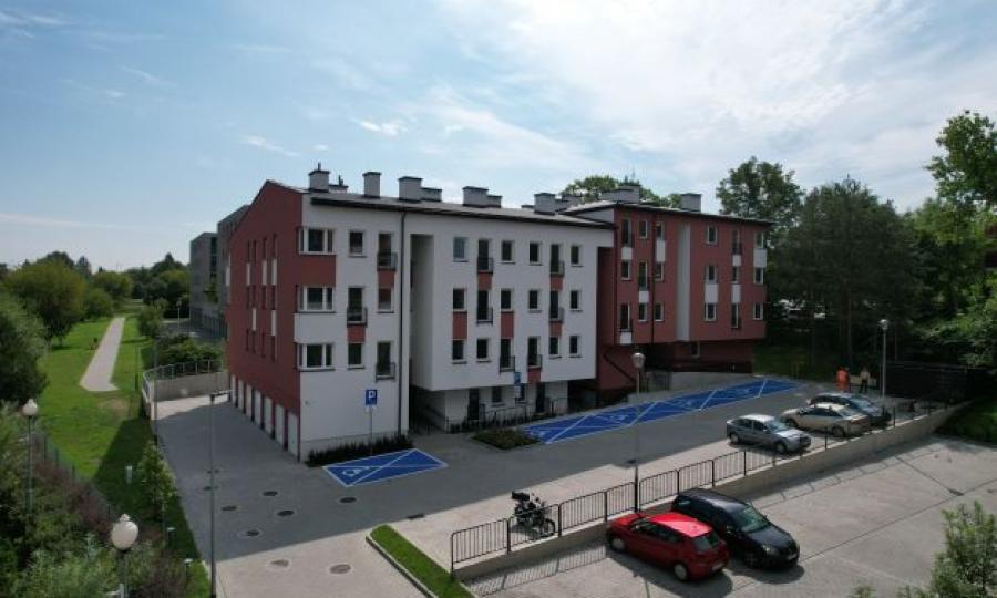 Budynek wielorodzinny przy ul. Fredry 4C to niewielki, czterokondygnacyjny blok z 46 mieszkaniami, w tym 5 dla niepełnosprawnych, liczący maksymalnie do 15 m wysokości. W sąsiedztwie powstał teren zielony oraz 46 miejsc postojowych – 15 z nich w garażach w przyziemiu budynku. Pięć miejsc przeznaczonych jest dla niepełnosprawnych. W ramach inwestycji nasadzono 180 sztuk roślin, głównie krzewów, w zamian za drzewa usunięte przez realizacja zadania. Przeważają klony, cisy, graby i róże.