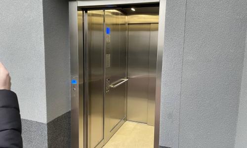 - Kabina dźwigu osobowego (windy) o szerokości co najmniej 1,1 m i długości 1,4m, poręcze na wysokości 0,9m oraz tablicę przyzywową na odpowiedniej wysokości wraz z oznakowaniem dla osób niewidomych i informacją głosową (m.in. informacją na którym piętrze znajduje się kabina windy).