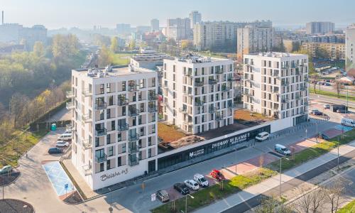 - trzy klatki schodowe wyposażone w windy,