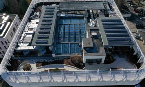 W maszynowni zainstalowano dwie gruntowe pompy ciepła o łącznej mocy grzewczej 225 kW i chłodzącej 180 kW. Dolne źródło ciepła stanowi zestaw 26 odwiertów o długości 200 m każdy. Ogrzewanie pomieszczeń odbywa się poprzez klimakonwektory. Wszystkie pomieszczenia wyposażone są w urządzenia i systemy redukujące zużycie prądu, oświetlenie energooszczędne LED.