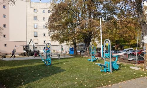 Zrewitalizowany skwer, to także miejsce przyjazne dla starszych użytkowników. Dziadkowie młodych wrocławian mogą na skwerze zagrać w szachy na szerokich ławkach przy specjalnym stole szachowym, a rodzice - zadbać o dobrą kondycję na plenerowej siłowni lub przy stole do ping ponga. Nie zapomnieliśmy o mamach niemowląt - jest specjalnie ławeczka do przewijania i karmienia bobasów.