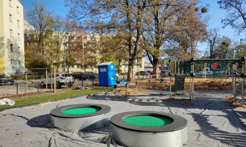 Skwer miejski z nowoczesnym placem zabaw i siłownią zewnętrzną ul. Pszenna/Jęczmienna we Wrocławiu