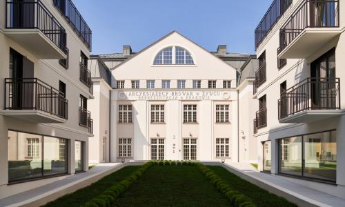 Nietuzinkowe połączenie historycznych zabudowań browaru z nowoczesnymi rozwiązaniami architektonicznymi.
