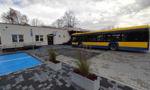 Inwestycja polegała na gruntownej przebudowie budynku po dawnym dworcu oraz zagospodarowaniu placu i utworzenie odpowiedniego układu komunikacyjnego dla autobusów, busów oraz samochodów osobowych w tym:.