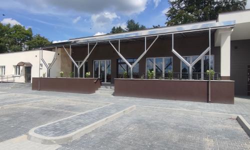 Część wschodnia budynku ma taka samą funkcję oraz dodatkowo planowane jest uruchomienie punktu gastronomicznego.