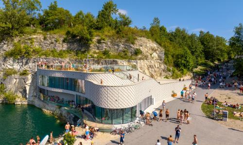 Park Zakrzówek to obszar terenów zielonych położony w bezpośredniej bliskości historycznego centrum Krakowa (niecałe 2 km od Wawelu) z charakterystycznym elementem w postaci niefunkcjonującego już, częściowo zalanego kamieniołomu wapienia. W ramach projektu rewitalizacji zrealizowanego przez Pracownię Projektową F-11 pod kierownictwem arch. Marcina Furtaka na obszarze niemal 52 ha zaprojektowano budynki oraz infrastrukturę umożliwiające bezpieczne udostępnienie tej przestrzeni mieszkańcom miasta. Na tafli zbiornika powstało ogólnodostępne kąpielisko, składające się z 5 wydzielonych pływającymi pomostami basenów o różnych powierzchniach i głębokościach. Przy wejściu na kąpielisko zlokalizowano pawilon, mieszący strefę zaplecza oraz centrum edukacji ekologicznej. Z kolei amatorzy nurkowania swoją przestrzeń znajdą w budynku Centrum Sportów Wodnych. Posiada on ergonomiczną, ukształtowaną tarasowo formę na rzucie zbliżonym do trójkąta. Od strony wschodniej całkowicie przylega do ściany skalnej, a cześć północna jest częściowo zawieszona nad lustrem wody. W budynku zaprojektowano m.in. zaplecze sportowe, kawiarnię i salę szkoleniową.