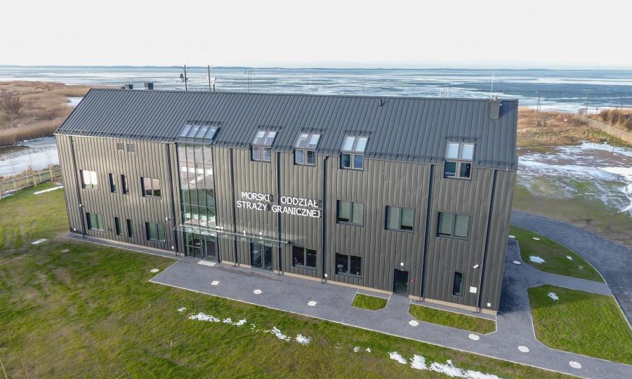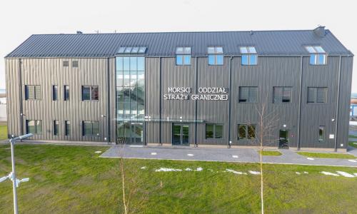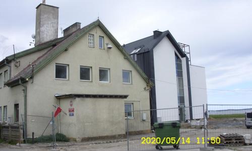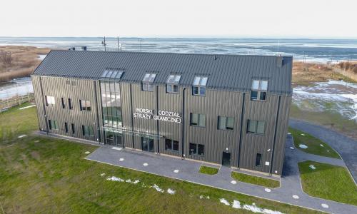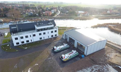 Budynek administracyjny dla załóg poduszkowców został wybudowany w roku 2020, posiada 3 kondygnacje nadziemne, nie posiada kondygnacji podziemnych. Budynek został wybudowany w technologii tradycyjnej- murowanej z elementami żelbetowymi. Konstrukcja stropu jest żelbetowa, więźba dachowa o konstrukcji drewnianej, stropodachy pod tarasami żelbetowe. Dach pokryty jest blachą w rąbek stojący. Budynek został posadowiony na palach. Kubatura budynku: 6 573,1m3, powierzchnia użytkowa 1 265,46m2.