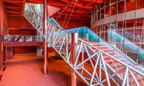 Zaprojektowany system elektroakustyczny pozwolił na równomierne nagłośnienie całej powierzchni każdej sali. Sale wyposażone są w system miksowania do sumowania sygnałów audio, system odsłuchowy w postaci mobilnych urządzeń głośnikowych dla wykonawców występujących na scenie, system mikrofonów bezprzewodowych czy innego niezbędnego dodatkowego wyposażenia. Do komunikacji najważniejszych osób z obsługi sali posłuży cyfrowy system interkomu parujący. Wykonane systemy oświetlenia scenicznego dla poszczególnych sal umożliwiają realizację różnorodnych gatunków scenicznych takich jak: spektakle teatralne, widowiska muzyczne czy koncerty estradowe. Nowoczesna i w pełni zarządzana instalacja elektryczna oświetlenia scenicznego z uwagi na teatralny charakter sal została zaprojektowana tak, aby w pełni umożliwić użytkownikowi jej wykorzystanie, szczególnie w przypadku, gdy potrzebna jest szybka zmiana konfiguracji oświetlenia. Do wyświetlania prezentacji w poszczególnych Salach Teatralnych zamontowano najwyższej jakości projektory z laserowym źródłem światła. System pętli indukcyjnej transmituje dźwięk ze źródła do aparatów słuchowych z wykorzystaniem zjawiska indukcji magnetycznej.