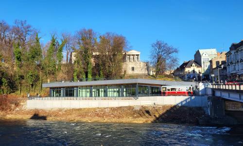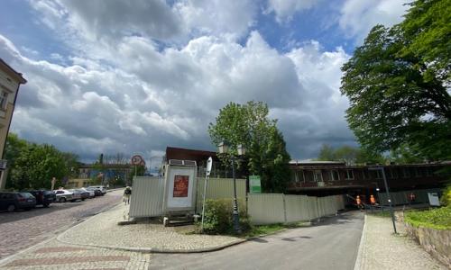 Nowy budynek jest jednokondygnacyjny, jego wielkość w stosunku do istniejącego wcześniej w tym miejscu znacznie się zmieniła - jest niższy o jedną kondygnację, tj. o około 3 m, dzięki czemu została odsłonięta oś widokowa na zamek i górę zamkową. Podstawowym przeznaczeniem projektowanego budynku jest funkcja usługowa wraz z toaletami publicznymi.