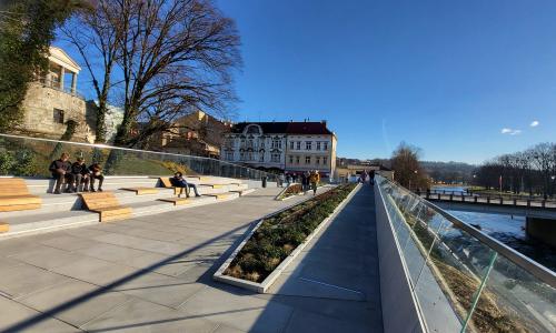 Transgraniczne Centrum Informacji Turystycznej całkowicie zmienia przestrzeń w okolicach Mostu Przyjaźni. Budynek, o jedną kondygnację niższy od dawnej strażnicy granicznej, został wykończony zielonym dachem, na który można wejść i obserwować drugi brzeg Olzy, a także samą rzekę, niegdyś dzielącą, a dziś łączącą dwie części miasta. Również w tym przypadku nie zapomniano o kwestii dostępności - wejście na dach, a także do samego budynku, jest umożliwione różnym grupom osób - niezależnie od ich wieku, stanu zdrowia czy ograniczeń ruchowych.