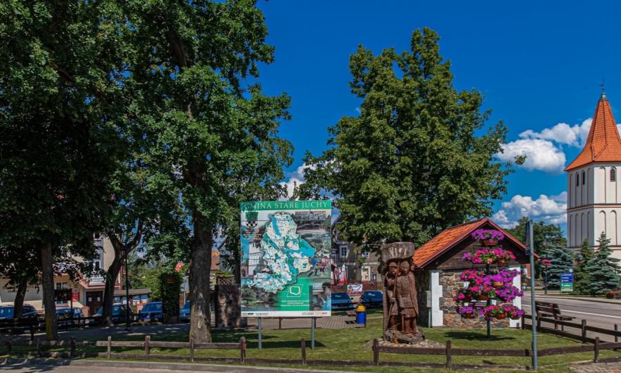 W ramach rewitalizacji skweru przy Urzędzie Gminy w Starych Juchach wykonano wymianę gruntu pod rabaty kwiatowe i trawnik, wykonano nowa posadzkę na przystanku, wyłożono powierzchnię kostką kamienną granitową. Pojawiły się nasadzenia roślin oraz elementy małej architektury, takie jak ławki, pergola, stojak na rowery. Odrestaurowano przystanek oraz pompę wodną.