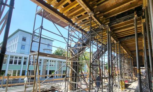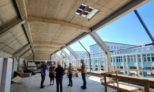 Budynek przez ostatnie kilka lat opuszczony i nieużytkowany. Stan techniczny z roku na rok pogarszał się. Tylna część dachu była zawalona. W miarę dobrze zachowane były skrzydła boczne. Skrzydło środkowe posiadało mniejszą wartość architektoniczną i zły stan techniczny. Dlatego zaproponowano aby zachowując tylko ściany zewnętrzne odbudować je w nowej, podwyższonej formie, jako stalowo-szklaną bryłę, nawiązującą do całości właściwymi proporcjami.