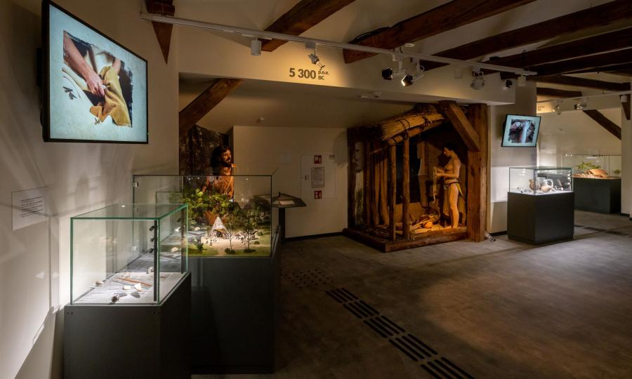 Uwagę zwraca nowa aranżacja i znakomicie podświetlone zabytki odzwierciedlające rozwój kultury ludzkiej w ciągu ostatnich 70 tysięcy lat. Na monitorach pokazano, w jaki sposób były wykonywane niektóre z nich. Mrok jaskini będącej schronieniem ludzi neandertalskich ogrzewa realistyczne ognisko, a przez uchylone poły namiotu łowców mamutów, widoczne są w oddali wędrujące największe ssaki lądowe epoki lodowcowej. W zaciszu domu pierwszych rolników na ręcznych żarnach kobieta przygotowuje mąkę. Gdy podnosi oczy na widza i ociera pot z czoła, możemy nieć uczucie, że należy jej pomóc. Ale to tylko hologram... Epoka brązu to dominacja ognia. Na wielkim stosie pogrzebowym płonie ciało zmarłego, w ogniu wytapia się też nowy metal – brąz – połączenie miedzi i cyny. To pierwszy stop wytworzony przez człowieka. Powstawały z niego piękne przedmioty, również codziennego użytku. Stukot młota o kowadło wita nas w epoce żelaza – to kolejny hologram. Kowal był ważnym rzemieślnikiem w pierwszych wiekach naszej ery. Przez uchylone drzwi domostwa z tych czasów widzimy krajobraz, falujące zboże, człowieka pracującego w obejściu, a w oddali dymiące dymarki, w których wytapiano żelazo. W roku tysięcznym oglądamy zabytki Słowian, którzy z wolna przyjmują i akceptują chrześcijaństwo. Przez okno mieszkańca nieistniejącego jeszcze rynku możemy „rzucić okiem” w kierunku wawelskiego wzgórza. Na pierwszym planie zobaczymy romańską ścianę kościoła św. Wojciecha a na horyzoncie wały Okołu – podgrodzia wawelskiego – usytuowane na dzisiejszym placu Wszystkich Świętych. Opowieść o pradziejach i średniowieczu Małopolski kończymy około roku 1300 gwarem krakowskiego rynku po lokacji miasta.