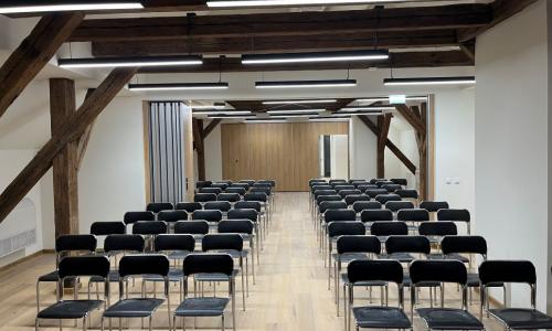 Nowym i bardzo ważnym elementem powstałej infrastruktury jest dobrze wyposażona sala konferencyjna z zapleczem. W sposób komfortowy może przyjąć co najmniej 120 osób. Liczymy, że atrakcyjna lokalizacja i nowoczesna przestrzeń spotka się z zainteresowaniem organizatorów spotkań, którym zależy na oryginalnym miejscu w niezwykłym otoczeniu.