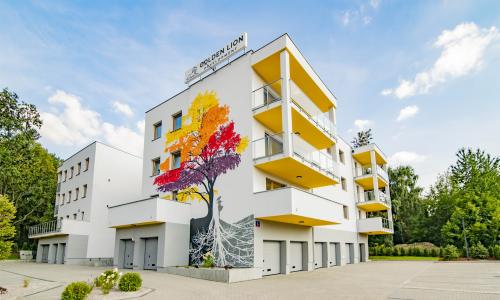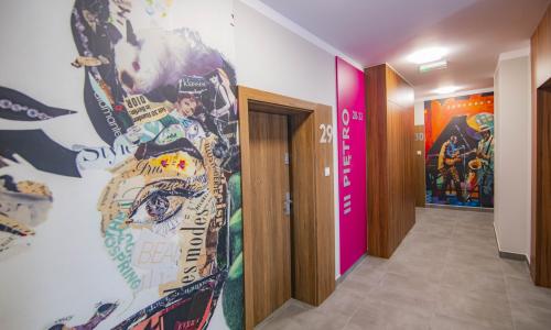 Uwagę wszystkich, którzy pojawiają się w pobliżu inwestycji przyciąga wspomniany, imponujący mural w kształcie drzewa, widoczny z daleka, na północnej ścianie budynku. Zaś wewnętrzne korytarze uzupełniają zdobienia w postaci reprodukcji dzieł mistrzów malarstwa z różnych epok (od impresjonizmu, aż po sztukę pop art).