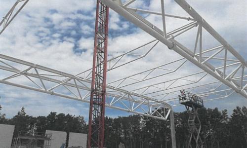 Budynek ACS składa się z dwóch głównych układów konstrukcyjnych. Główną Salę sportową przykrywa przestrzenna struktura złożona ze stalowych kratownic. Dźwigary główne oparte są na 4 głównych słupach żelbetowych. Pomiędzy dźwigarami zaprojektowano płatwie kratowe. Dach posiada nośność gotową do przeniesienia paneli fotowoltaicznych na powierzchni 60%. Ściany szczytowe słupowo-murowane. We wschodniej części Sali zaprojektowano ściankę wspinaczkową, której podkonstrukcja mocowana jest do ściany w całości żelbetowej.