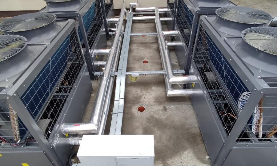 Montaż oparty na systemie wysokotemperaturowych pomp ciepła o mocy 270 kW(6szt x 45kW) w technologii kaskadowej. Modernizacja kotłowni objęła dostarczenie oraz montaż urządzeń m.in: