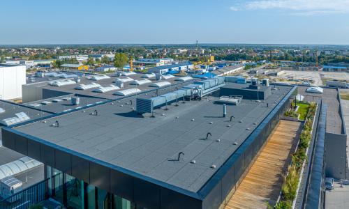 Zrównoważony rozwój to jeden z priorytetów Drukarni DAKO. Budynek wykorzystuje innowacyjne technologie, które redukują negatywny wpływ na środowisko. Jednym z przykładów jest chłód użytkowy, wytwarzany w procesie kogeneracji, który zwiększa efektywność energetyczną i jednocześnie redukuje ślad węglowy. Dzięki takim rozwiązaniom CBR jest miejscem, gdzie innowacja i ekologia spotykają się, tworząc fundament dla zrównoważonego rozwoju i konkurencyjności w branży.