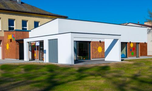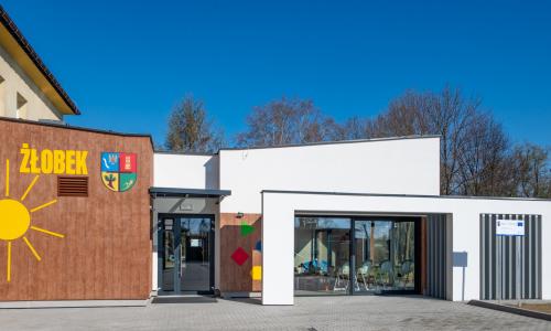 Budynek został zaprojektowany z myślą o komforcie i bezpieczeństwie najmłodszych. Dzięki połączeniu z przedszkolem specjalnym przejściem technicznym, codzienne funkcjonowanie placówki jest łatwiejsze i bardziej praktyczne. Żłobek harmonijnie wpisuje się w istniejącą zabudowę i krajobraz gminy, a jego architektura odpowiada nowoczesnym standardom użytkowym i ekologicznym.