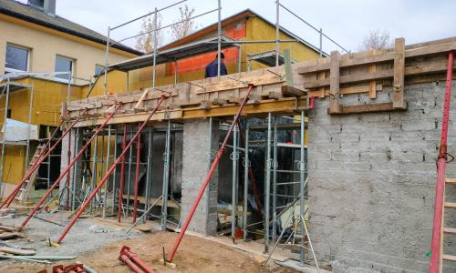 - wykonanie niezbędnej infrastruktury zewnętrznej – utwardzenie nawierzchni wokół budynku, budowę miejsc parkingowych oraz placu manewrowego dla służb ratunkowych.