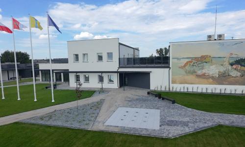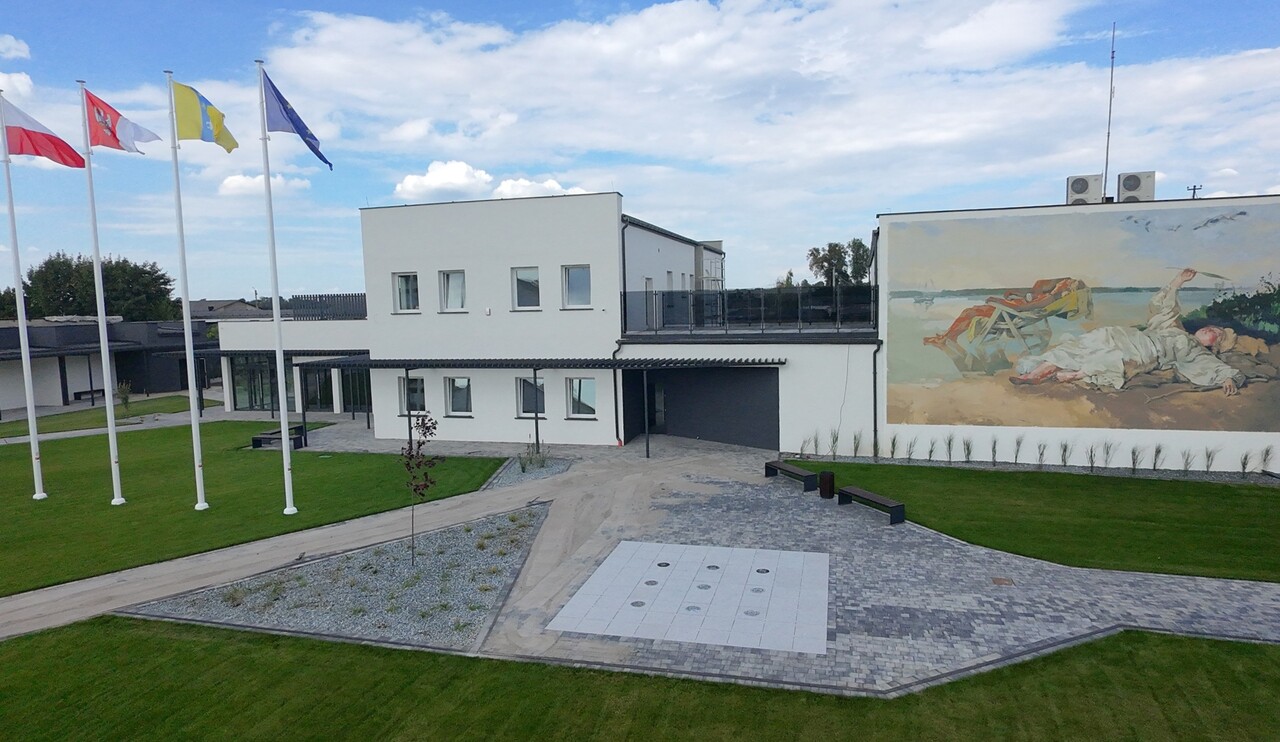 "Widok na jezioro" Ekologiczny mural na budynku Urzędu Gminy w Ostrowitem ul. Lipowa 2