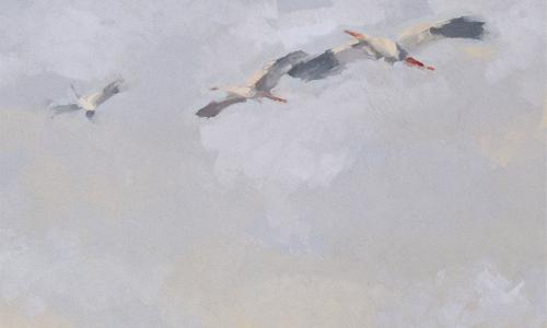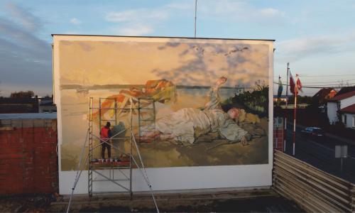 Mural „Widok na jezioro” Ekomural nawiązujący do unikatowego charakteru Gminy Ostrowite. Inspirowany wybranymi dziełami J. Chełmońskiego oraz miejscowym krajobrazem.