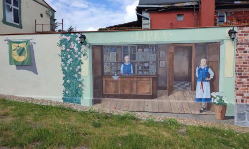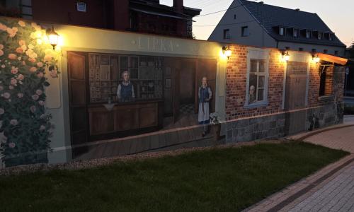 Lipka / wielkopolskie Mural w Lipce, ul. Kościuszki 24 Inwestor Gmina Lipka Wykonawca Alina i Gracjan Kaja Projektant Alina i Gracjan Kaja