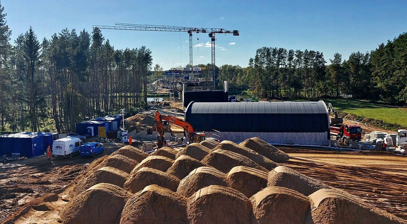 Umowę z wykonawcą – DOMOST Sp. z o.o. z siedzibą w Małkini Górnej, 07-320 Małkinia Górna ul. Kolejowa 30 podpisano 29.02.2024 r., z zaplanowanym końcem inwestycji 29.10.2025r. Dzięki zorganizowanej organizacji robót most i cała infrastruktura zostały wykonane o ponad dwa miesiące przed terminem: