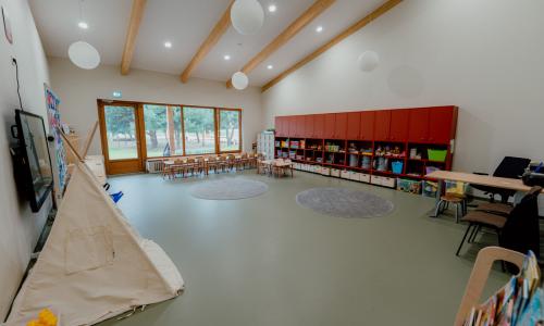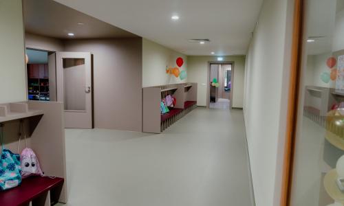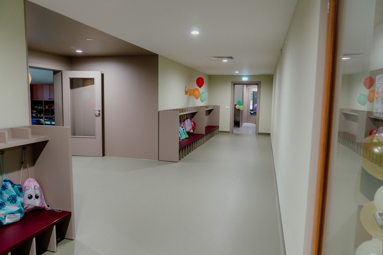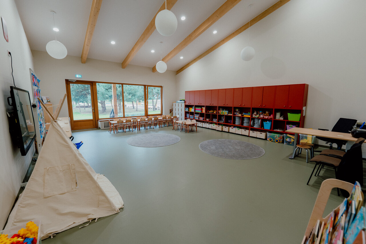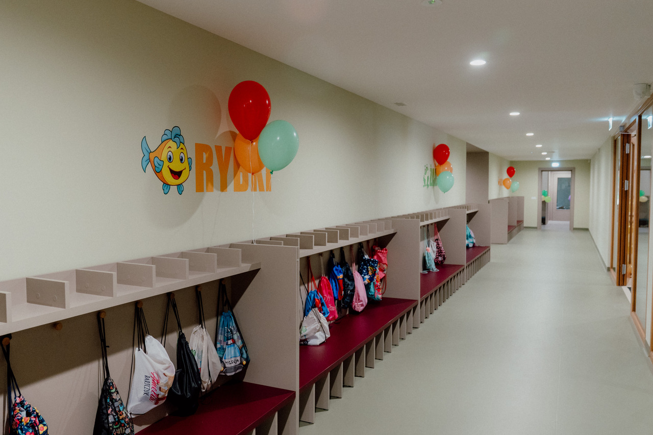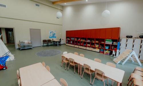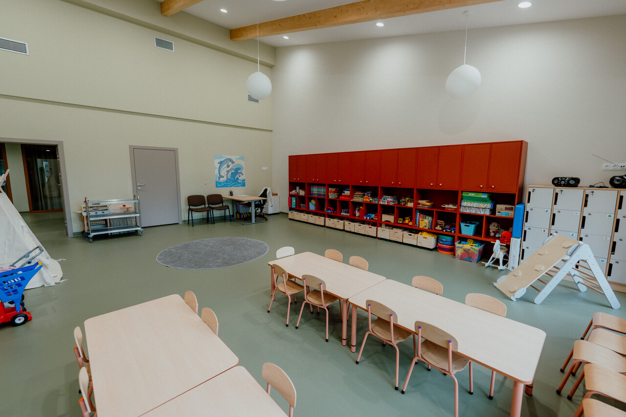 W części przedszkolnej zaprojektowano 8 przestronnych sal dydaktycznych o powierzchni 60 m², każdą z własnym zapleczem sanitarnym. Część żłobkowa obejmuje 5 sal o powierzchni 29 m², również wyposażonych w indywidualne łazienki, dostosowane do potrzeb najmłodszych dzieci. Układ sal umożliwia łatwy dostęp do przestrzeni zewnętrznej oraz bezpośredni kontakt z otoczeniem przyrodniczym.