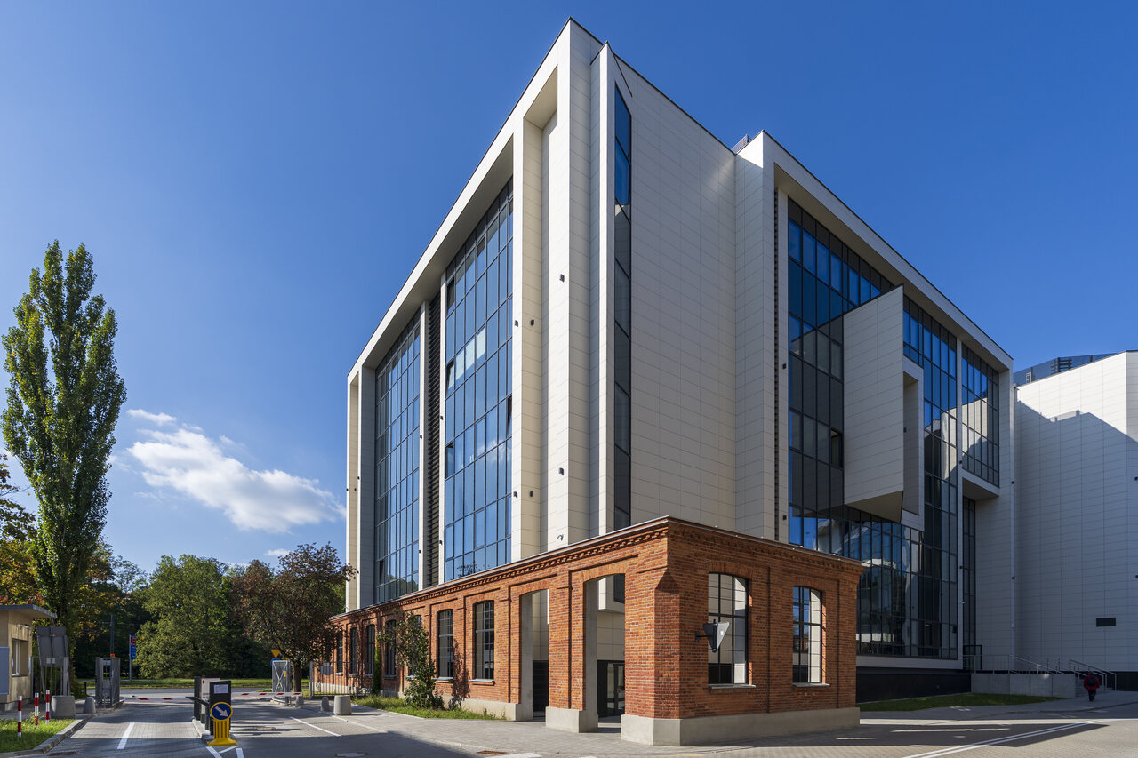 Jednym z symboli projektu jest harmonijne połączenie nowoczesnej bryły z fragmentami XIX-wiecznej fabryki Szaji Rosenblatta. Zachowanie historycznego muru i jego integracja z nową strukturą to przykład budownictwa z szacunkiem dla dziedzictwa.