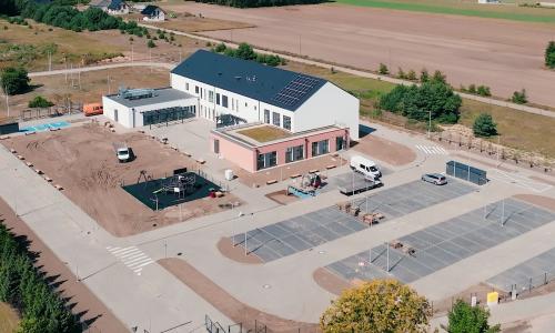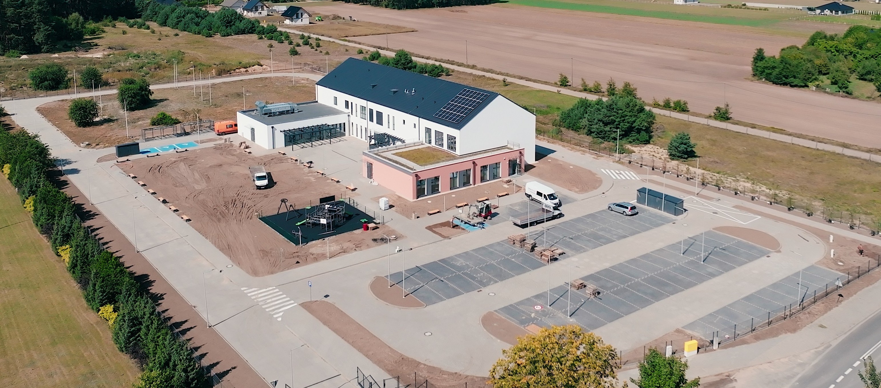 W ramach przedmiotowej inwestycji wykonano budynek dydaktyczny składający się z części szkolnej przeznaczonej dla dzieci z klas I-VIII w której przewidziano 11 sal lekcyjnych w tym dwie sale komputerowe, jedną pracownię fizyko-chemiczną oraz jedną pracownię językową. W ramach budynku przewidziano ponadto świetlicę, pomieszczenia administracyjne i techniczne, stołówkę wraz z zapleczem cateringowym, bibliotekę ze świetlicą. W obszarze budynku wykonano ciągi piesze i pieszo-jezdne, miejsca postojowe, plac zabaw, wiaty na rowery, zadaszoną osłonę na odpady stałe oraz instalacje zewnętrzne.