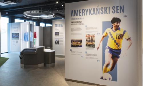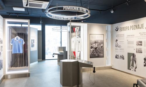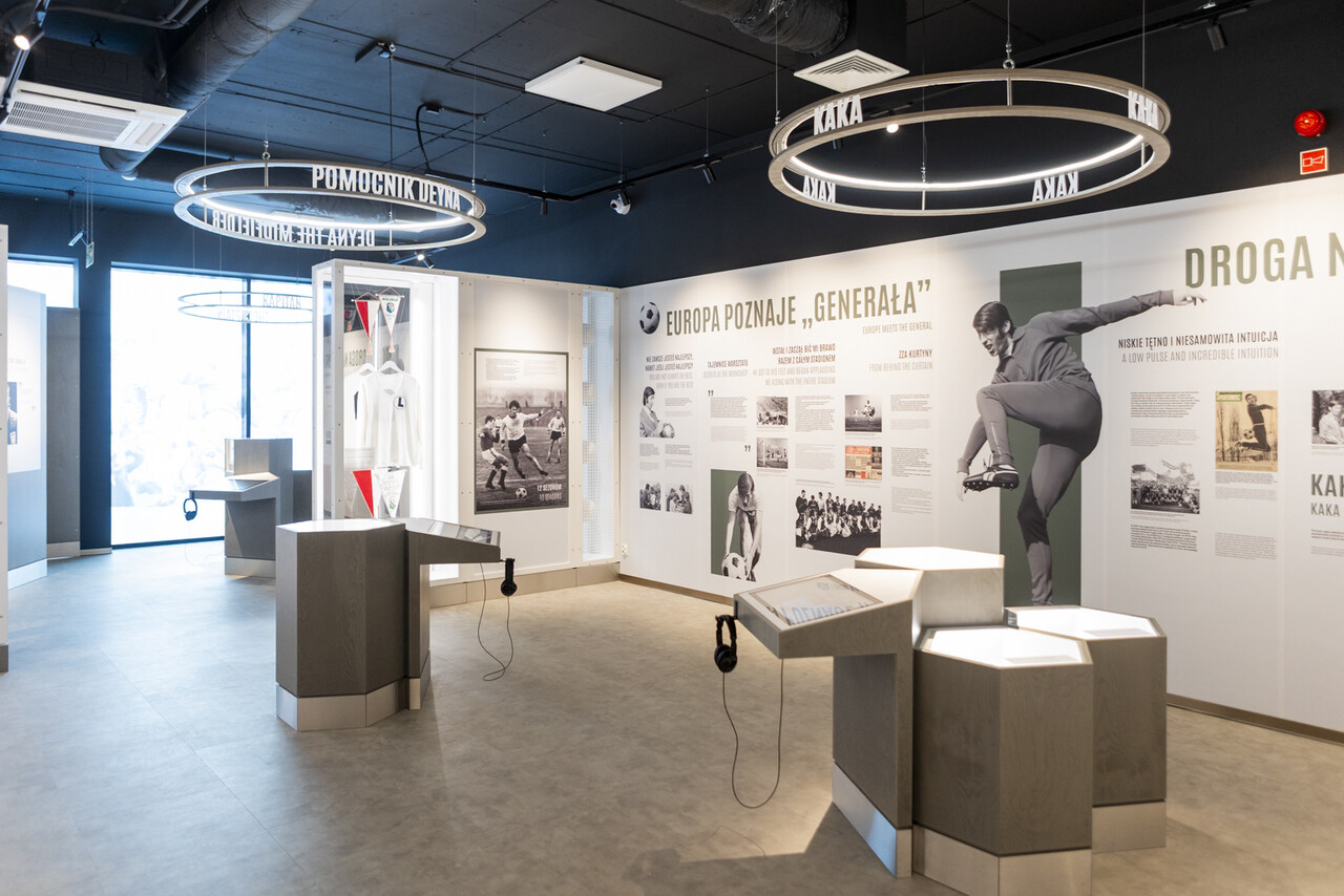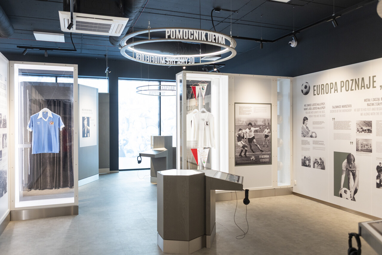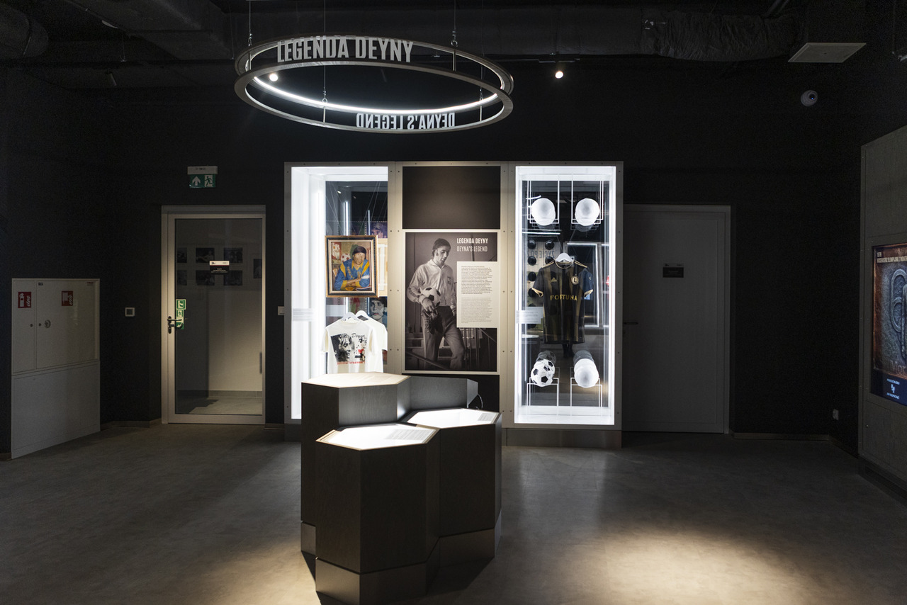 Na piętrze znajduje się przestrzeń ekspozycyjna, poświęcona w całości polskiej legendzie futbolu - urodzonemu w Starogardzie Gdańskim Kazimierzowi Deynie. Ekspozycja oprócz pamiątek po piłkarzu zawiera elementy multimedialne, które uatrakcyjniają jej zwiedzanie. Jest to pierwsze w Polsce Centrum i trzecie w Europie całkowicie poświęcone jednej gwieździe światowego futbolu.