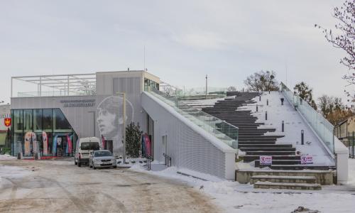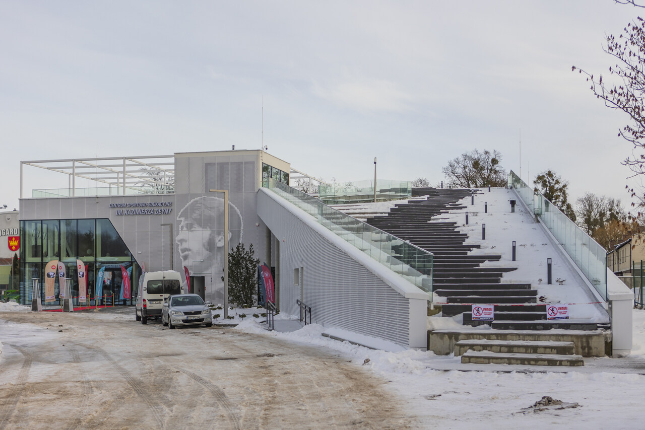 Architektonicznie to dwukondygnacyjny obiekt sportowo-edukacyjny, częściowo przeszklony z efektowną rampą prowadzącą na dach, tarasem widokowym i wewnętrznym ogrodem. Harmonijne wpisuje się w otoczenie Stadionu Miejskiego oraz tworzy atrakcyjną i przyjazną dla użytkowników przestrzeń. Łączy nowoczesność z funkcjonalnością. Całkowicie pozbawiony barier architektonicznych, umożliwia dostęp osobom niepełnosprawnym do wszystkich części, z których te osoby mogą korzystać, w tym tarasu na dachu.