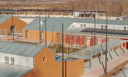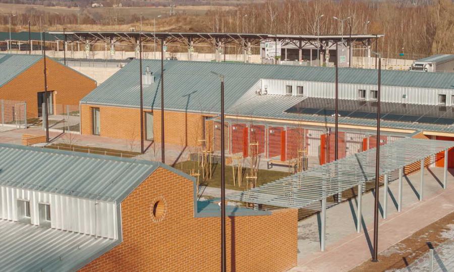 Zespół schroniska składa się z trzech podłużnych budynków rozmieszczonych wzdłuż dłuższych boków prostokątnej, dwudziestohektarowej działki. Obiekty tworzą ramę dla wewnętrznego dziedzińca – wspólnej przestrzeni użytkowej dla zwierząt i ludzi. Od strony północnej zlokalizowano strefę wejściową z parkingiem dla pracowników, wolontariuszy i odwiedzających.