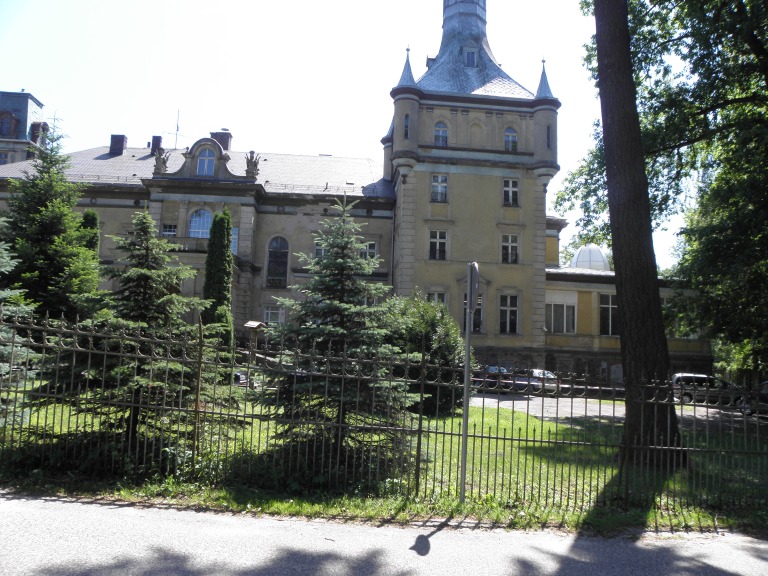 Budynek wzniesiono na rzucie przylegających do siebie prostokątów. Jako realizacja eklektyczna charakteryzuje się zróżnicowaniem stylistycznym oraz bogatym opracowaniem architektonicznym. W bryle występują liczne wykusze i ryzality, a elewacje wschodnia i zachodnia wyróżniają się szczególnie dekoracyjnym detalem. Od strony zachodniej zlokalizowany jest taras z balustradą oraz zejściem do parku.